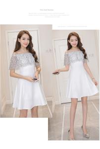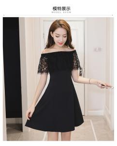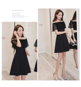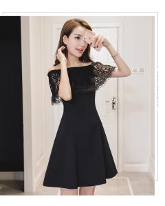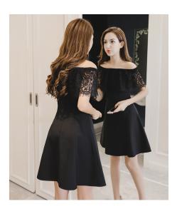 オフショルドレス オフショルワンピース 袖レース 半袖 フレアスカート ハイウエスト 無地 イブニングドレス