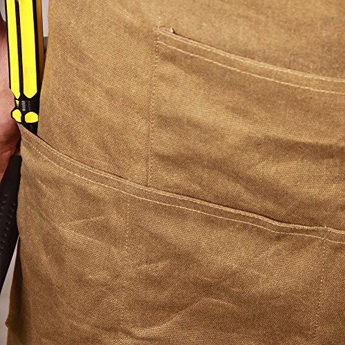 Waxed Canvas Work Safety Tool Apron Utility Garden Workwear Bib Waterproof Heavy Duty Multi-Use Shop Aprons with Six Pockets WQ03-1 (Brown)