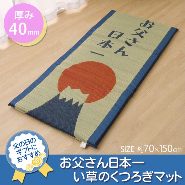 【商品名】い草マット 国産 マット ごろ寝マット フリーマット 『お父さん日本一 私の場所マット』 ブルー 約70×150cm(中:固わた40mm)