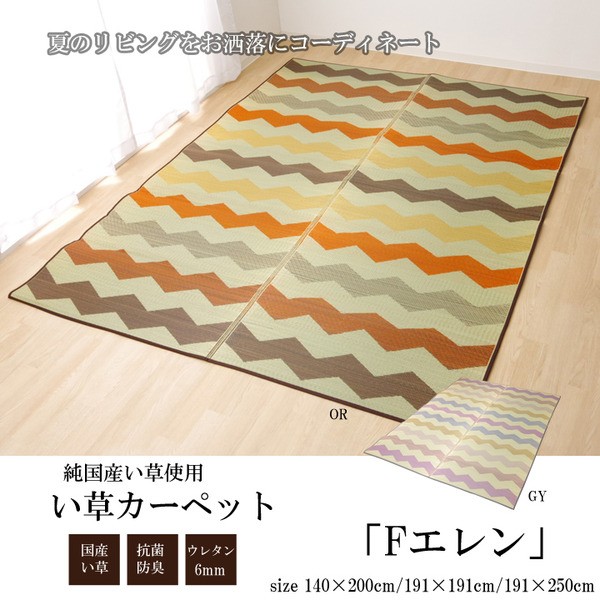 【商品名】い草ラグ 国産 ラグマット カーペット シンプル 長方形 『Fエレン』 グレー 約140×200cm (裏:ウレタン)
