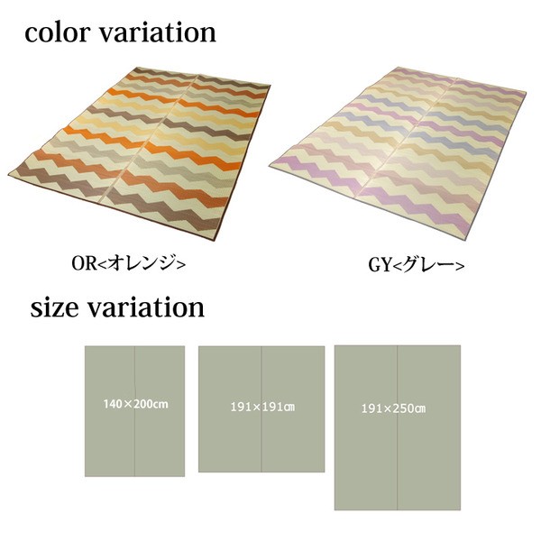 【素材】表地=い草(九州産) 裏地=ウレタンフォーム6mm ヘリ=(グレー)綿85%、麻15%(オレンジ)綿100%