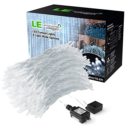 LE 594 LED Window Curtain Icicle Lights, String Fairy Lights, 19.7ft x 9.8ft, 8 Modes, Daylight White, Christmas/Thanksgiving/Wedding/Party Backdrops Decorative Lights