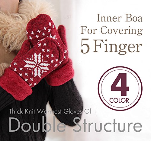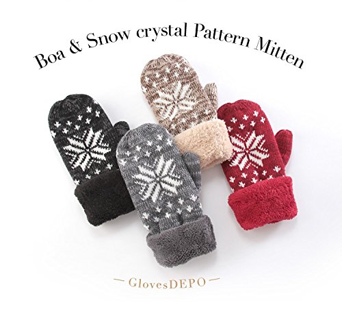 | (GlovesDEPO)/Accessories/Cold Weather Accessories/DIRECT FROM USA/GlovesDEPO Women's Winter Knitted Mitten Gloves Inner Boa For Covering 5 Finger Thick Knit Warm... |