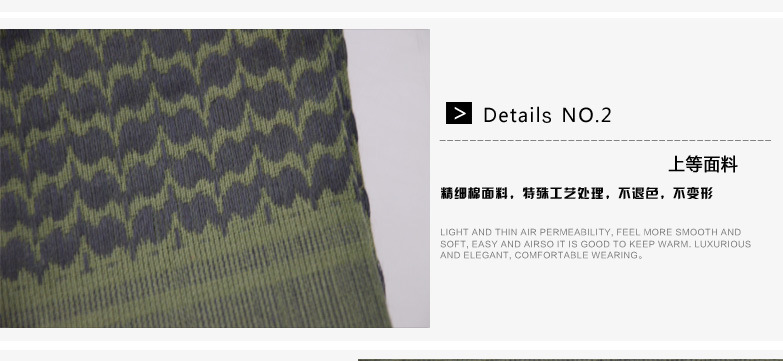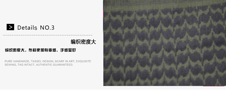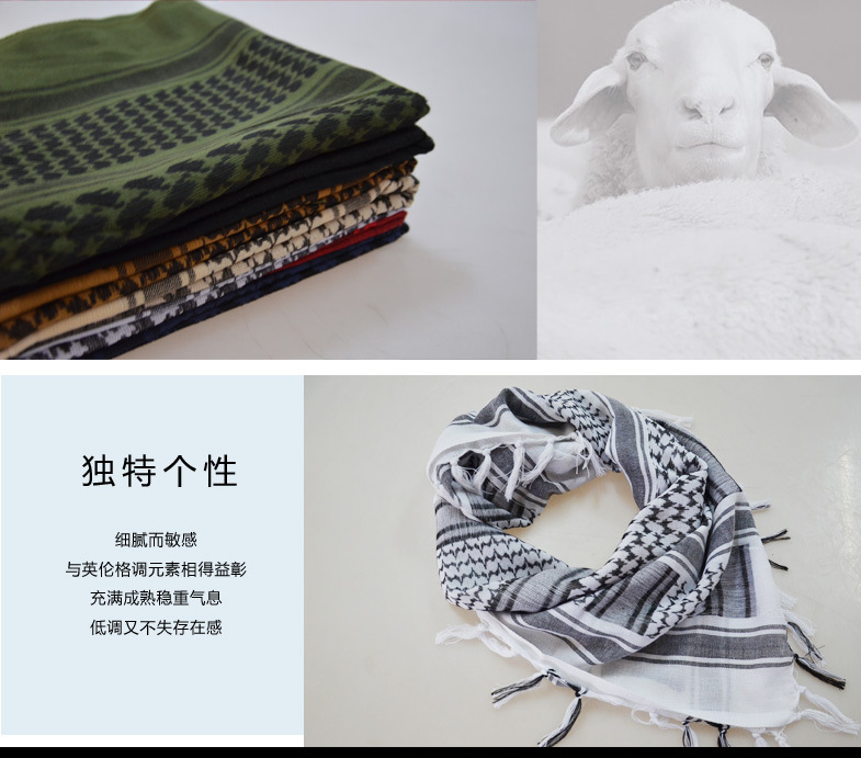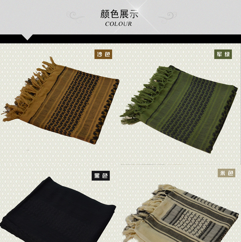 阿拉伯方巾采用全棉纱线,传统的织造工艺造就优良的品质。这类方巾也成了纺织行业中的特例,其特有的边穗也是其独特工艺的识别。