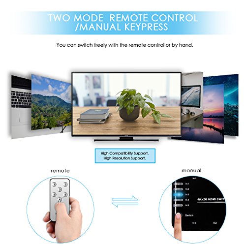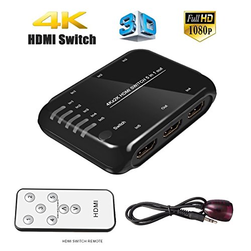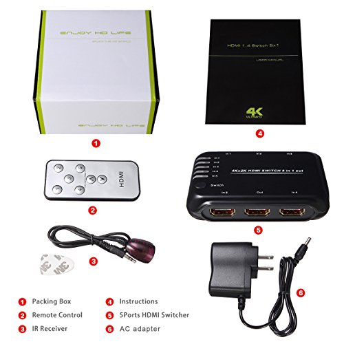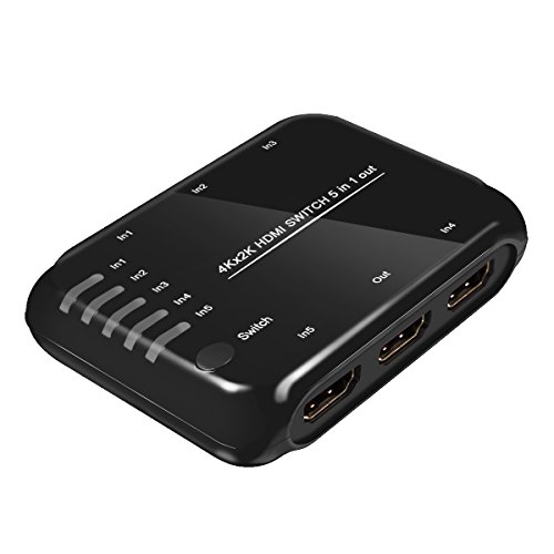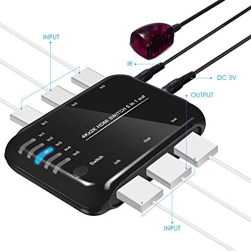 4K 5-Port HDMI Switcher, EPOLLO 5 In 1 Out HDMI Input Splitter Ultra HD HDMI Switch with IR Wireless Remote & AC Adapter, Support Full 3D 4K x 2K for DVD, HDTVs, Projectors, PS3, PS4, PC Ect
