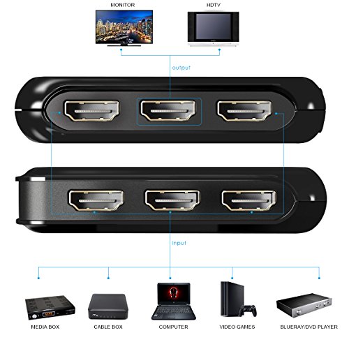 - Compatibility:The HDMI Switcher which will offer you excellent smooth playback of video or games, can dicern lots of input devices with the resolution from 480P to 4K, include 1080P, 2K, providing you different definition images even ultra HD.