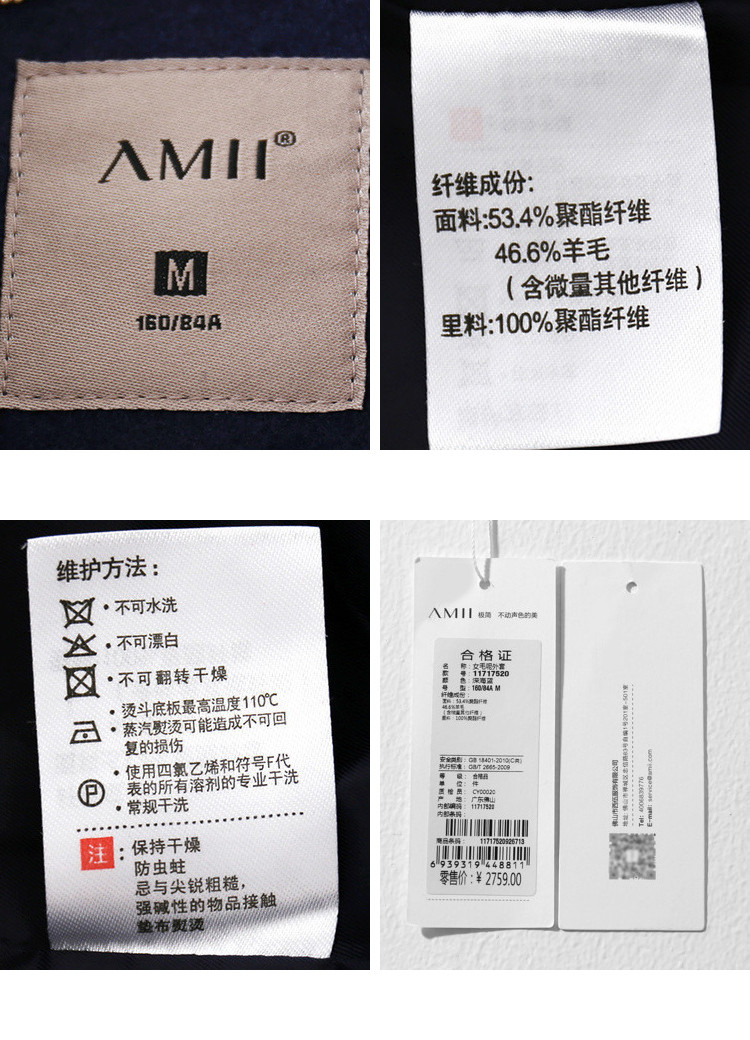 | 面料成分: | 面料:46.6%羊毛,53.4%聚酯纤维(含微量其他纤维) 里料:100%聚酯纤维 |