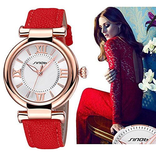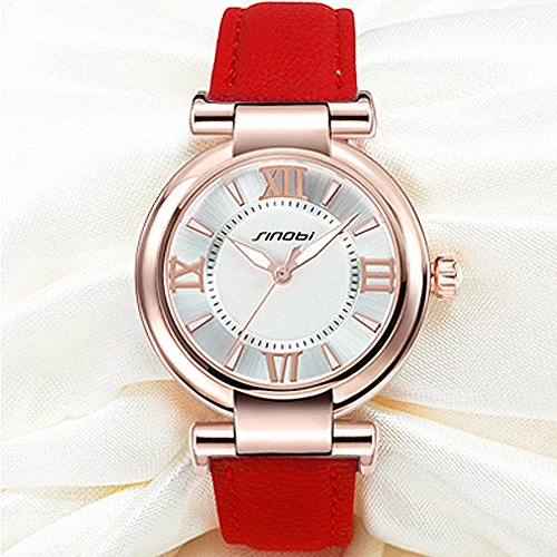 -. Title : SINOBI Casual Business Women Leather Wrist Watch Roman Numeral Luminous Dial Quartz Lady Watch Rose Gold