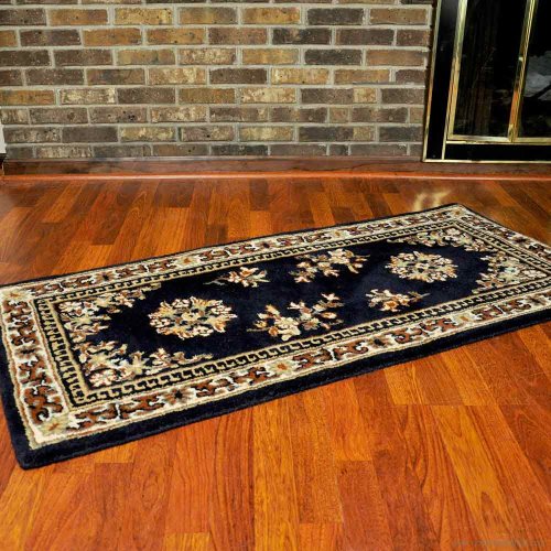 These hearth rugs are inspired by traditional Persian designs. They have five borders and floral medallions in the center. We offer them in rectangles and half rounds, in blue, beige and burgundy.Hearth rugs protect your floor and will add beauty and warmth to your fireplace. They can also be used as door mats or as occasional rugs throughout your house. (For indoor use only).All our hearth rugs are woven from the highest quality 100-percent virgin wool and dyed in rich saturated colors. They are fire resistant and meet federal requirements for surface flammability of small carpets (Part 1631 - FF2-70).Warning: your pets will probably make a bee-line for these rugs so they can bask in the warmth of the fire!Feature