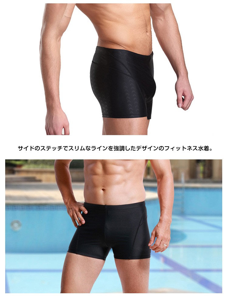 | 適度なフィット感とタイトなシルエットのメンズフィットネス水着。サイドのステッチでスリムなラインを強調したデザインのフィットネス水着。ストレッチ性に優れた素材で優しく体を包み込み、しめつけすぎず、ゆるすぎない適度な締め付けで長時間の着用でもリラックスして使用して頂けます。フィットネス、トレーニングに最適のスイムウェアです。 | |