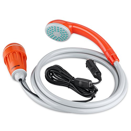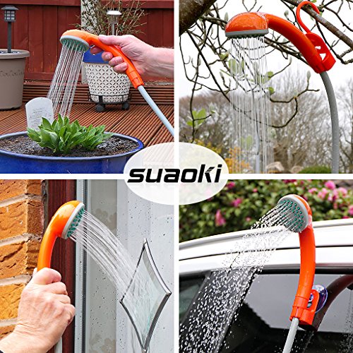 Suaoki Outdoor Powered Handheld Portable Camping Shower - Plug into 12v Cigarette Adapter and Turns Water from Bucket into Steady Gentle Stream - with Water Pump and Build-in Water Filtration System