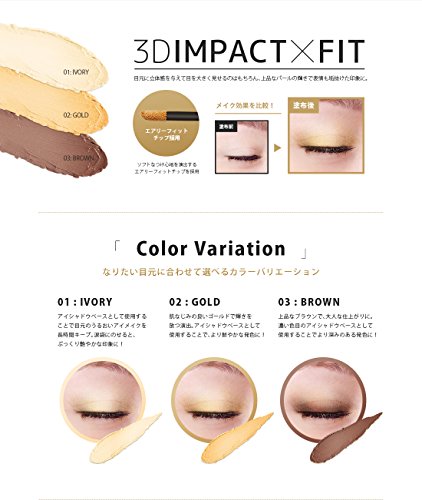 -. Feature : 11種類の美容成分配合!メイクしながらスキンケア! / ツヤ感&伸びが良い!クリームタイプの3wayシャドウ / シワ、毛穴などの凹凸を目立たなくし、ハリがる仕上がりに! / 2種類の特殊パウダーで透明感のある肌を実現! / カラー:ゴールド(肌なじみの良いゴールドで輝きを放つ演出!アイシャドウベースとして使用することで、より鮮やかな発色に!)