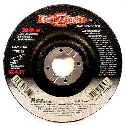 SAIT 22600 Type 27 4-1/2-Inch x 1/4-Inch x 7/8-Inch 13300 Max RPM Z-Tech - Z24R Zirconium Depressed Center Grinding Wheels, 25-Pack
