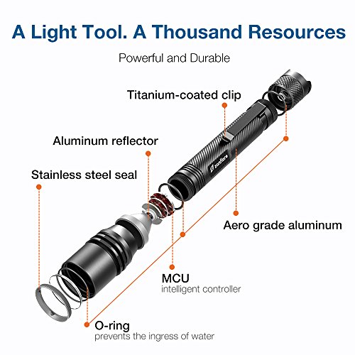 HEAVY DUTY BUILD: IP68 Water resistant, anti-abrasive, skid proof, compact design makes it the top pocket flashlight for tactical situations, outdoor activities, camping, hiking, hunting, fishing, power outages, home use, security and as an powerful emergency light.