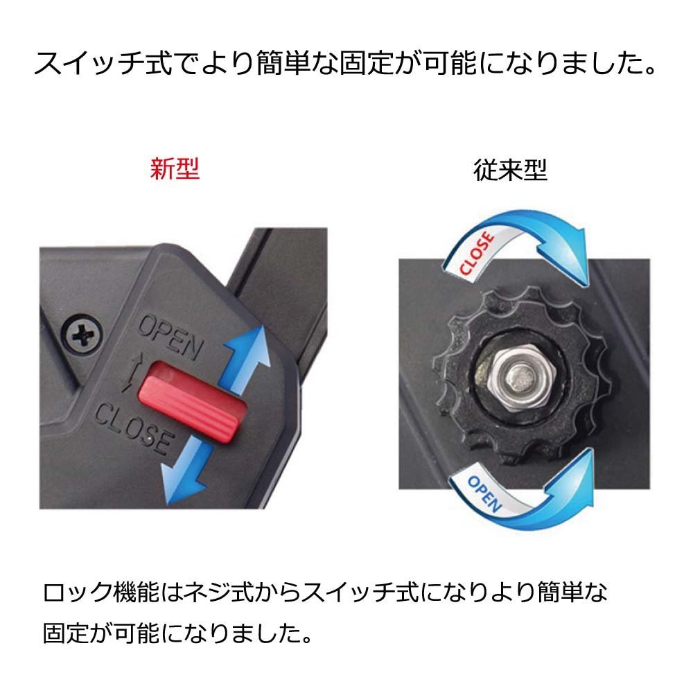 Locking function is changed from screw type to switch type and easier