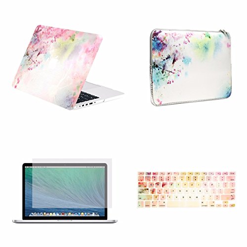 -. Title : TOP CASE 4 in 1 Bundle Deal - Vibrant Summer Graphics Rubberized Hard Case, Keyboard Cover, Screen Protector and Sleeve Bag for MacBook Pro 13" with Retina Display A1425 / A1502 - Cherry Blossom