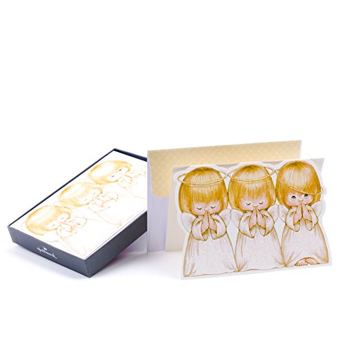 Studio : Hallmark Marketing Company, LLC (Office) Publisher : Hallmark Marketing Company, LLC (Office) Binding : Office Product Product Description Boxed cards of Christmas religious greetings featuring the Hallmark Three Angels on the die-cut Christmas card cover. Printed on high quality paper stock, these boxed Christmas cards are perfect for anyone on your holiday greeting card list. Open the card to reveal the inside message, “God bless you, love you, keep you at Christmas time and always.” 16 Christmas greeting cards and 17 envelopes are included in the boxed card assortment. The greeting cards measure 4.81 inches wide by 6.94 inches long. Hallmark cards are made with paper from well-managed forests. 0