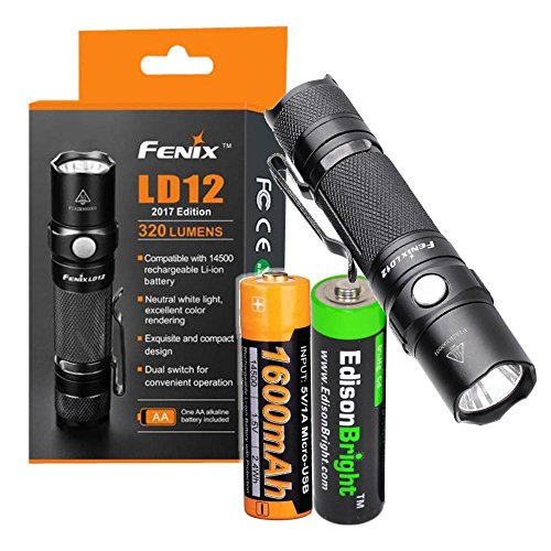 Fenix LD12 320 Lumen LED Tactical Flashlight USB rechargeable kit with EdisonBright AA battery