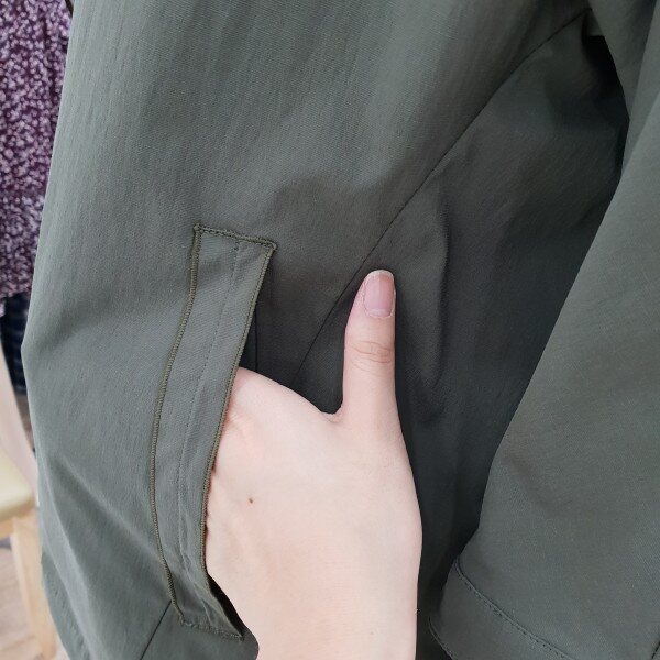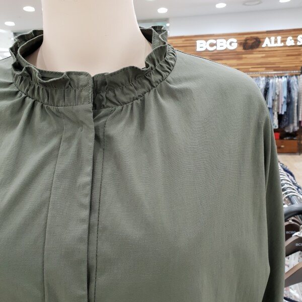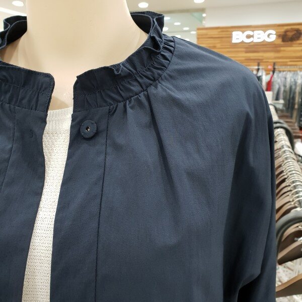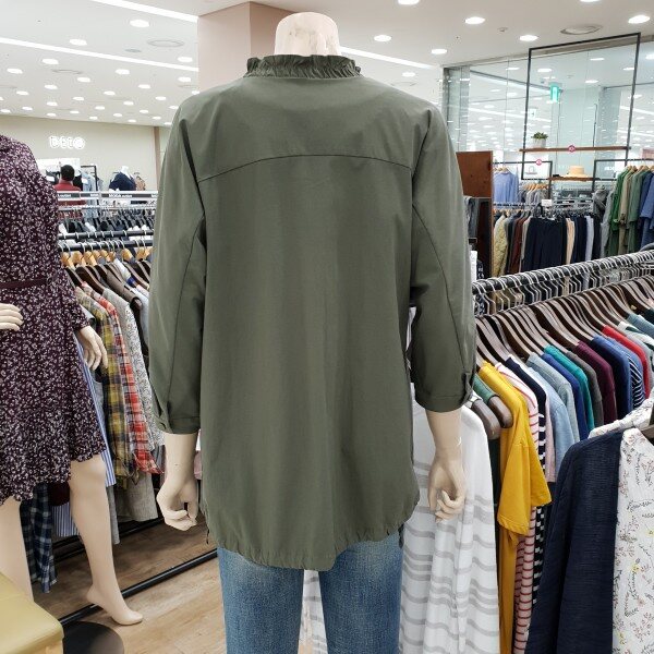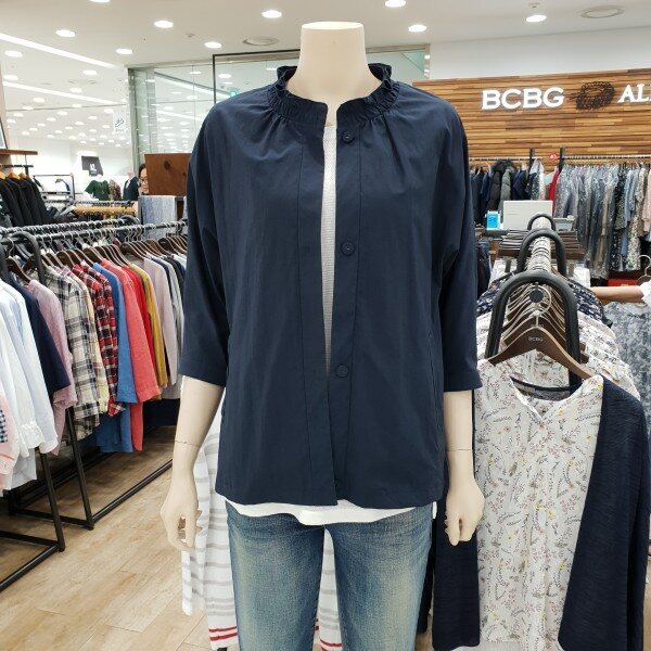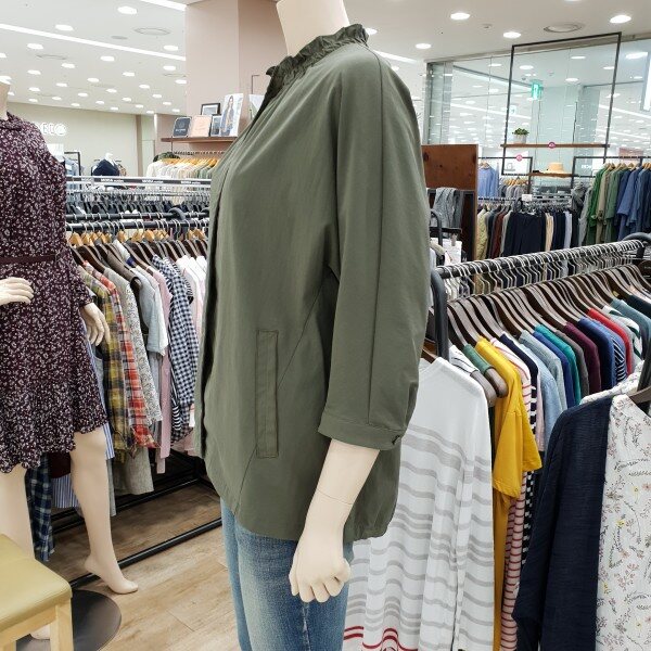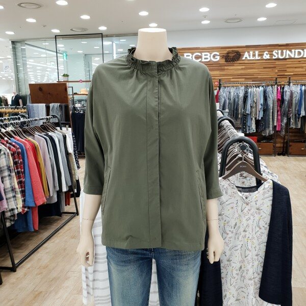 넥 셔링주름 포인트 면혼방소재 7부점퍼