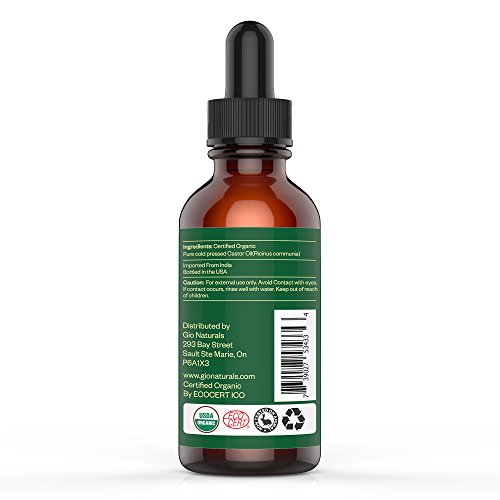 Gio Naturals Castor Oil - USDA Certified Organic, 100% Pure, Cold Pressed, Hexane Free - Stimulate Growth for Hair, Eyelashes, Eyebrows - Boosts Growth Instantly! Moisturize & Heal Dry Skin & Scalp