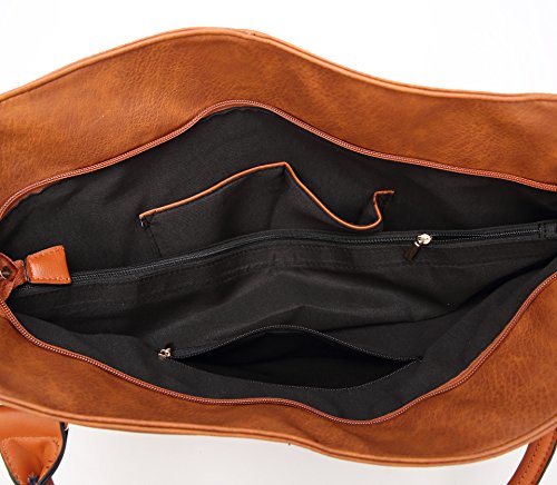 -. Feature : Material: High quality soft PU leather / Size: 17.32" * 5.5" * 12.6" (L*W*H) handle hight 6.3" / Closure: Top zipper closure, adjustable and removable shoulder strap / Internal structure: 1 big middle zipper pocket, 1 small zipper pocket and 2 compartments open pockets for phone/keys/card / Feature: Large capacity, easy to hold iPad, unique fake zipper design, never out of style