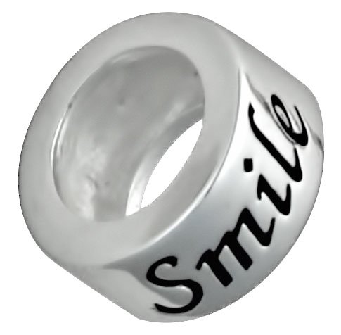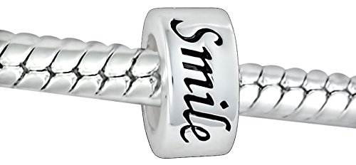 -. Title : .925 Sterling Silver Engraved Smile Bead Charm, Compatible with European Style Snake Chain Bracelets