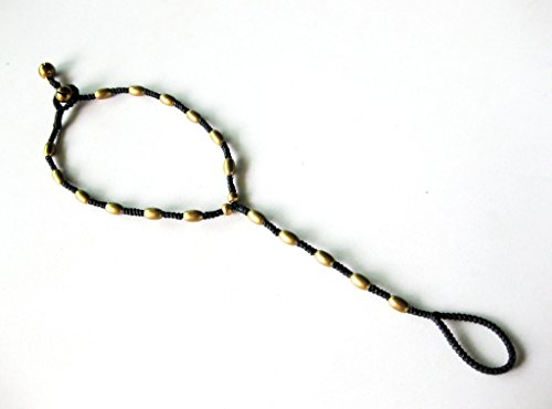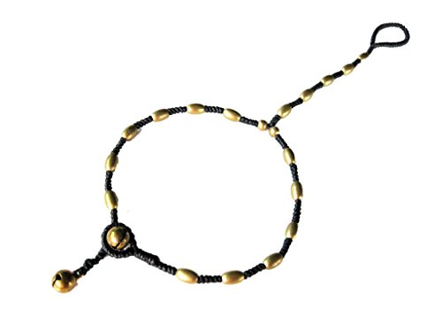 -. Feature : Thailand Handmade jewelry, made by hands with love. / Materials: Waxed Cords, Brass Bead, Brass Bells / Size : Length: 10.5-11 inches, Width: 0.2 inches / This Anklet is Anklet-toe-Ring made with Brass Beads woven together with cotton wax cord and bells for closure 2 size. / Ships worldwide from Chiang Mai, Thailand
