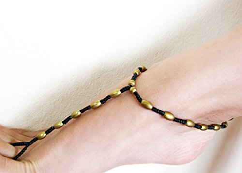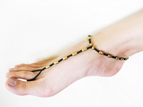 -. Title : Khum Wieng Kham Women's Anklet-toe-Ring Barefoot Sandals footwear Brass Bead Wax Cord Bohemian
