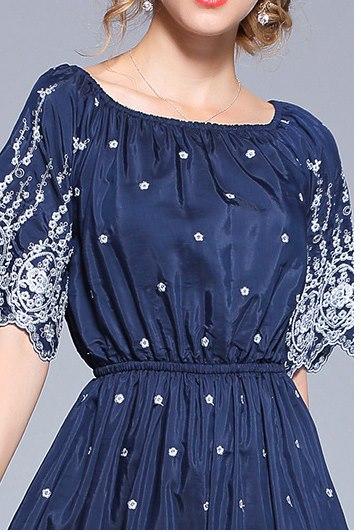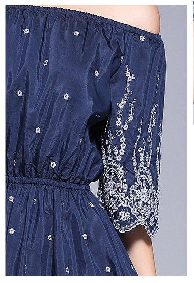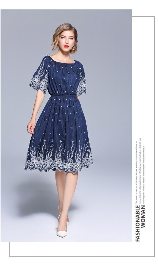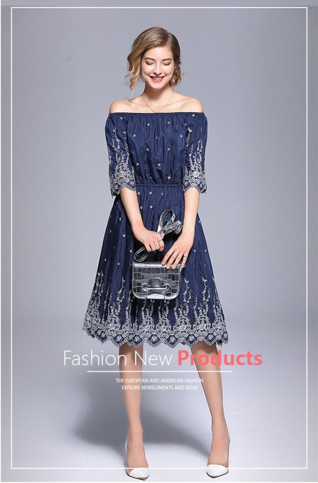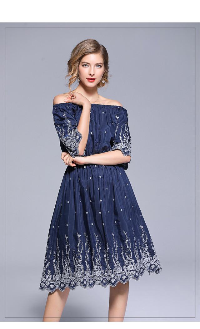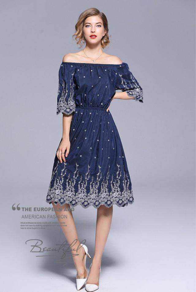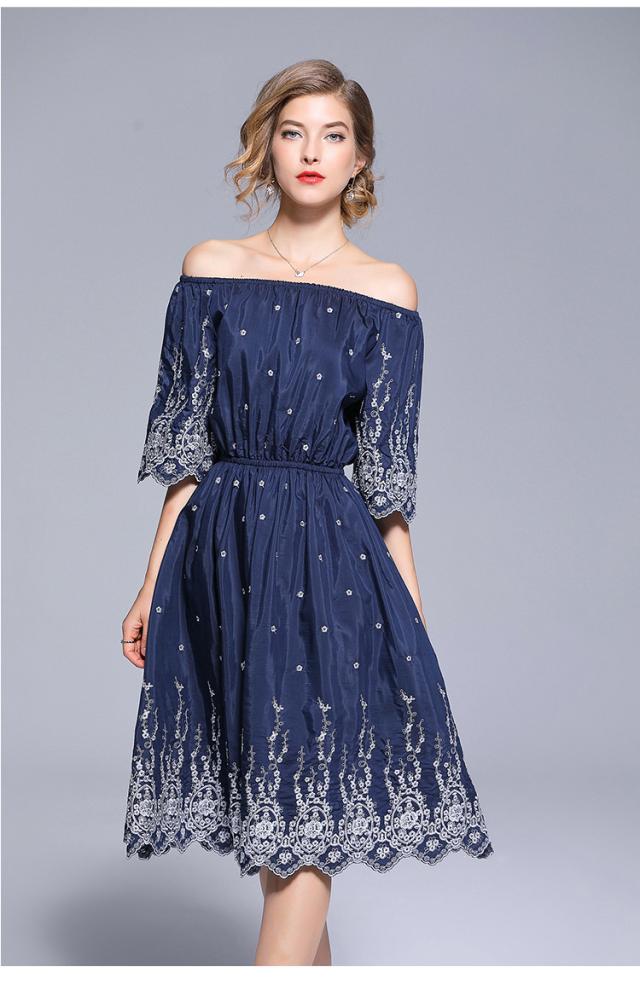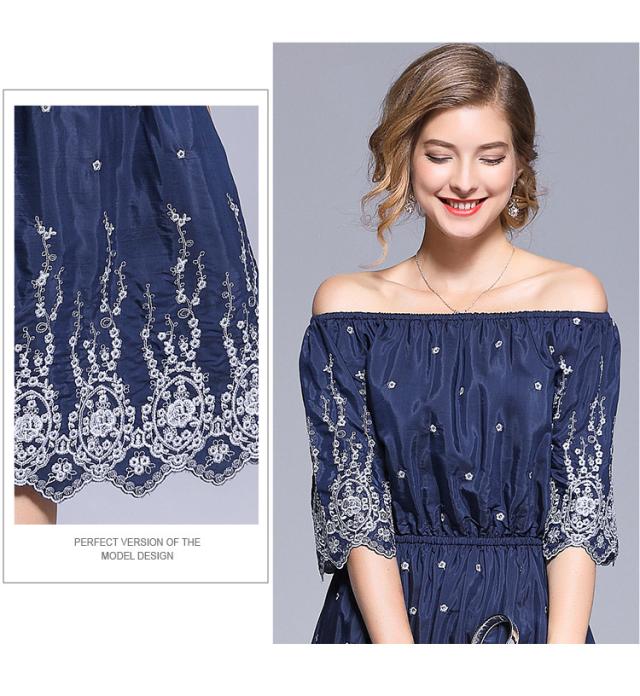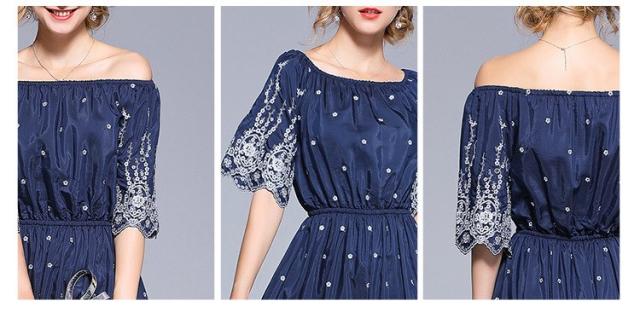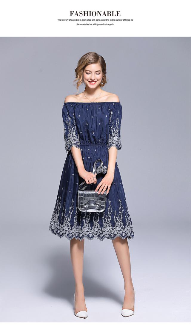 オフショルダー 刺繍 スカラップカット 五分丈 ワンピース ドレス 結婚式 二次会 デート 女子会 ディナー 卒業式
