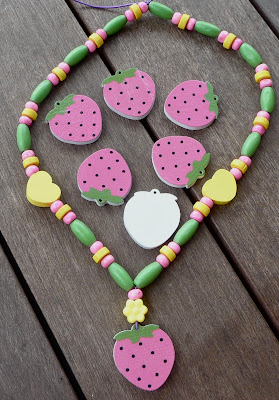 Strawberries - 10 Wooden Strawberries Pendants @ S$0.75
