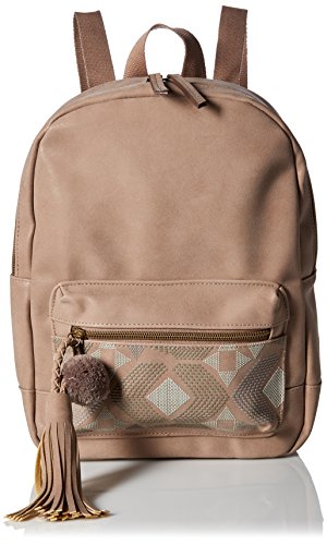 -. Feature : Mid size back pack / Back wall zipper compartment / Adjustable back pack straps / Puff P.R.Int detail / Pom tassel