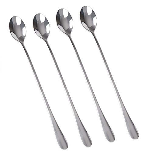 Coffee Mixing Spoons, 9-Inch Long Handle Spoons for Iced Tea, Dessert, Ice Cream, DFmicro Deluxe Stainless Steel Cocktail Stirring Spoons, Set of 4