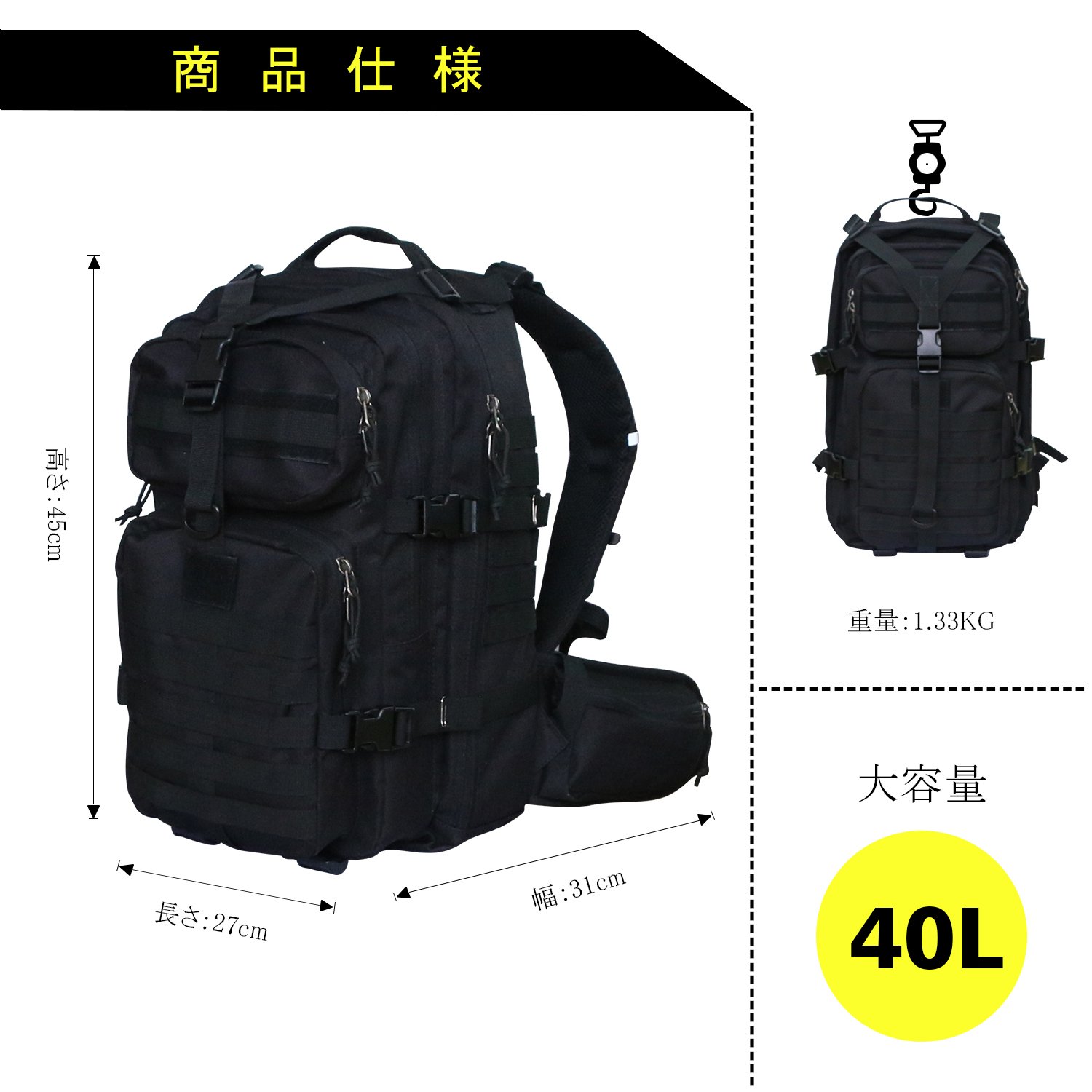 Vihir Military Bag 40 L Backpack High Capacity Mountaineering Zuck Backpack Water Repellent Durability Waterproof Seismic Resistant Air Multiple Function Bag Outdoor Bag Travel Bag Unisex