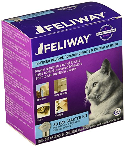 -. Binding : Misc. -. Brand : Feliway -. Feature : Prevent cats from urinating where they shouldn't / Duplicates the smell of a cat's natural scent glands / Cats will not soil anything close to where Feliway has been sprayed / Lasts approximately four weeks / Helps to restore a feeling of calm in the cat -. Label : VPL -. Manufacturer : VPL -. Model : FELIWAY48ML2PK -. MPN : FELIWAY48ML2PK -. NumberOfItems : 1 -. PackageQuantity : 2 -. PartNumber : FELIWAY48ML2PK -. ProductGroup : Pet Products -. ProductTypeName : PET_SUPPLIES -. Publisher : VPL -. Size : 2 packs -. Studio : VPL -. Title : 2 Pack Feliway Electric Diffuser (48 mL)