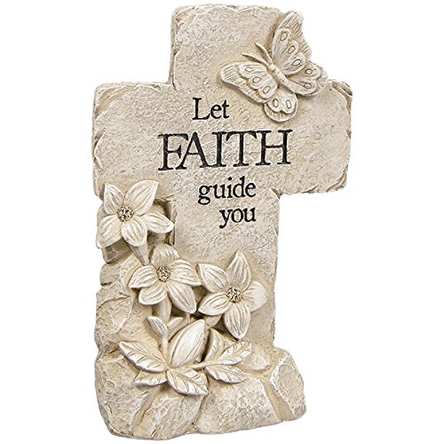 Let Faith Guide You Floral Butterfly Sandstone Look 4 x 6 Inch Resin Decorative Pedestal Cross