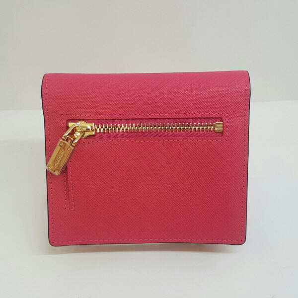 고급스러운 로고장식과사피아노 소재를 사용한선명한 핑크칼라의 반지갑심플한 디자인으로소가죽반지갑입니다