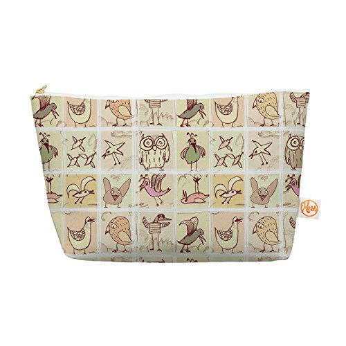 Kess InHouse Everything Bag, Tapered Pouch, Marianna Tankelevich "Birdies" Yellow Brown, 8.5 x 4 Inches (MT1016AEP03)