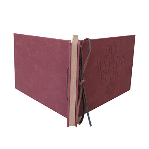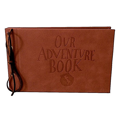 LINKEDWIN Debossed Our Adventure Book, Leatherette Covers with Genuine Leather Strip Bind (A: Light Brown Pages)