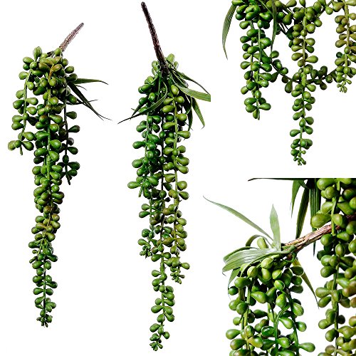 Package: 2 artificial hanging string of pearls plant, box is not included. ( Each string has 5 branches)