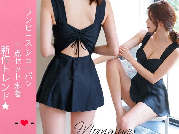 2018年 新作 レディース水着 ワンピース水着 ショーパン 2点セット 水着 ブラック