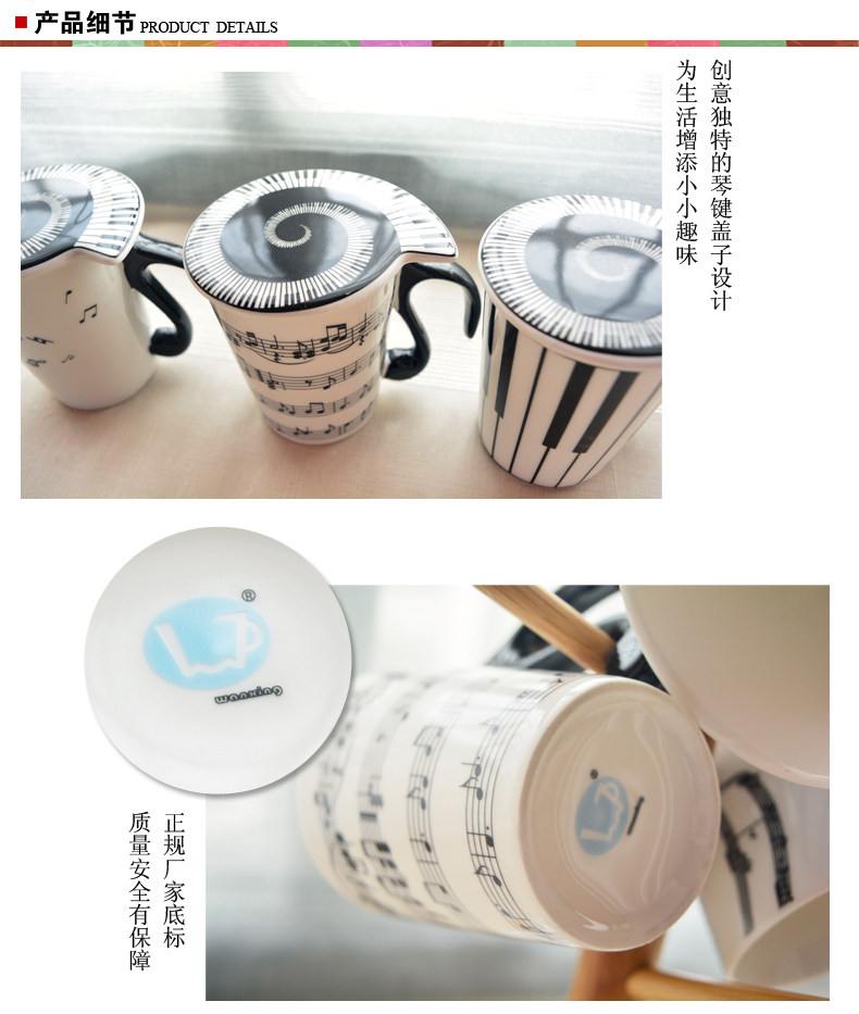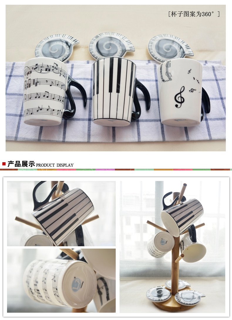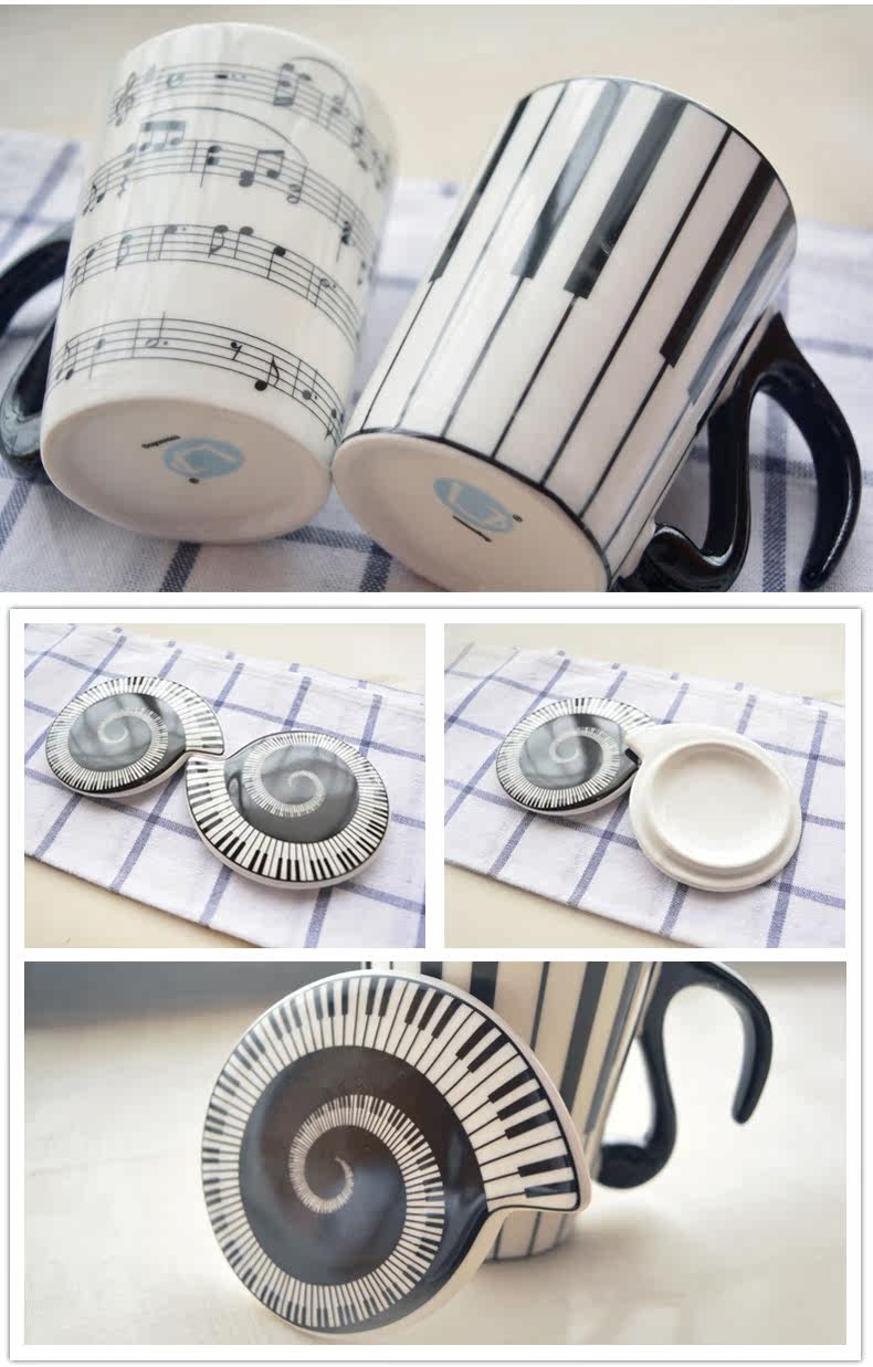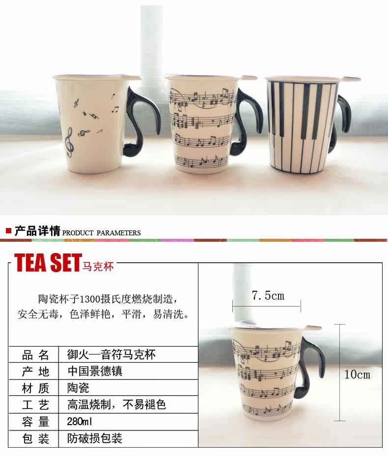 创意景德镇陶瓷马克杯 黑白简约音符音乐水杯情侣杯子带手柄