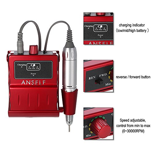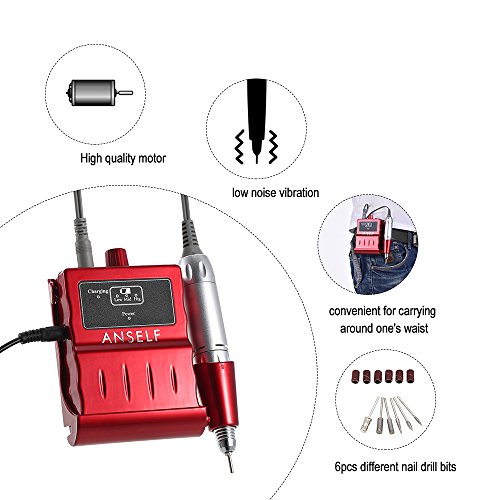 Features: Speed control: Speed adjustable, control from min to max(0~30000RPM), easy to control and operate. Pedicure Manicure: Come with 6pcs different nail drill bits, perfect for reshaping pedicure manicure nails. Simple operation: Forward and reverse operation switch, simple to operate. Suitable for professional salon, spas, or family use. Low noise vibration: High quality motor, low noise and vibration during long-time operation. Portable to carry: Components can be changed easily without tools, convenient for carrying around one's waist.