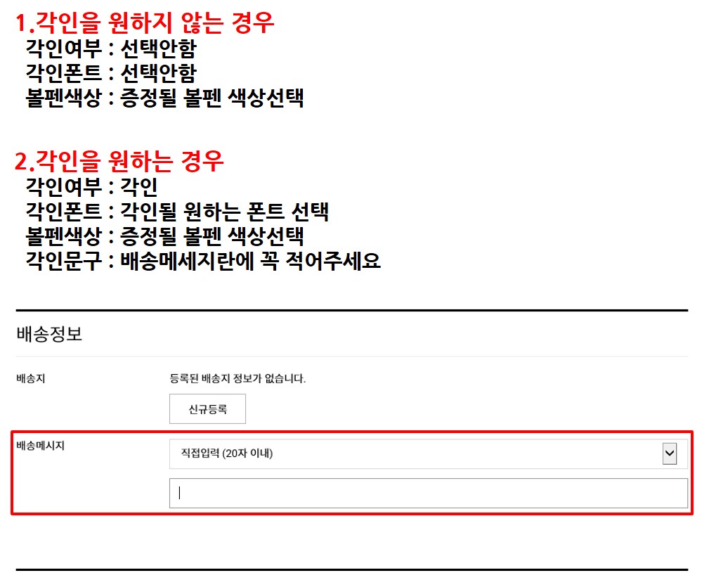 옵션에 꼭 볼펜색상을 선택해주세요!