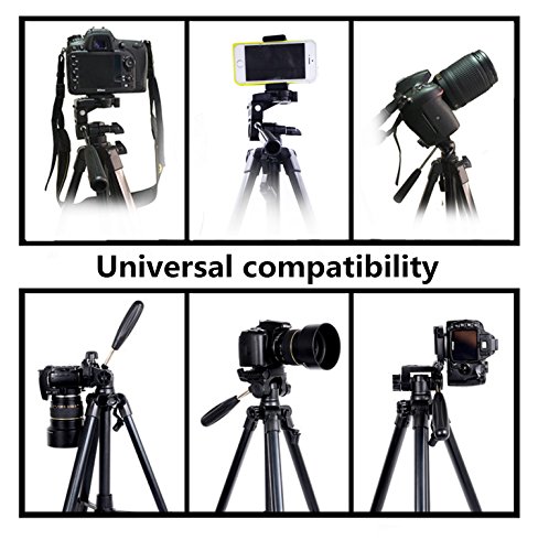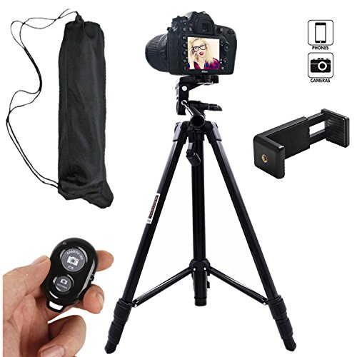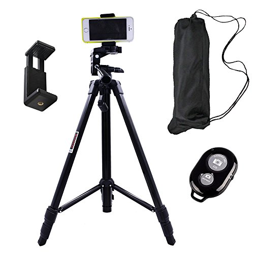 Hi-tec 55 Inch Aluminum Professional Portable Cell Phone Tripod for Iphone, Cell phone and Camera with Phone Mount Holder + Remote