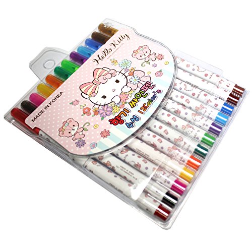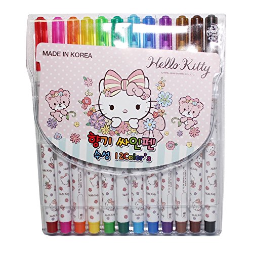 -. Title : HELLO KITTY Scented Felt-Tip Water-Based Pen - 12 Colors Sets