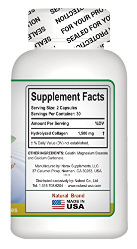 Ingredients (per 2 capsules): Hydrolyzed Collagen from sourced Fish 1.500mg, Gelatin, Magnesium Stearate and Calcium Carbonate. Users: People with dark skin, melasma and dry skin. The best value - 60 capsules per bottle. Effective quick, safe. The product has been licensed by the US FDA, No: TDR9-DV6H.Feature