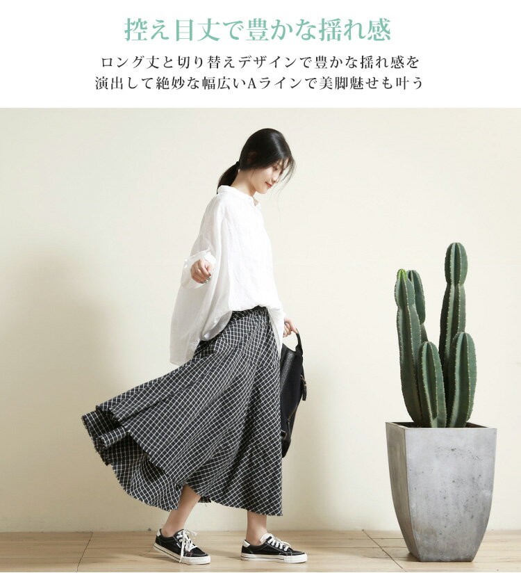 キーワード:スカート ロングスカート マキシスカート レディース ロング マキシ ボトムス Aライン チェック柄 ふんわり ゆったり 綿混 広がる ウエストゴム 柔らかい 大人 上品 シンプル 春 秋 冬 通勤 普段着 着心地 女性らしい ミモレ丈 体型カバー ゆる 美脚効果 着痩せ コットン ナチュラル カジュアル 抜け感 リラックス感 20代 30代 40代 オールシーズン 日常 切り替え 黒★素材:綿麻生産国:中国柔軟度:柔らかめ★カラー:写真参考※お客様ご使用のPC環境により商品画像のカラーが多少異なる場合があります。仕入時期により多少デザインなど異なる場合があります。ご了承ください。★サイズ(CM):F:ウエスト66cm 総丈86cm 蹴回し540cm※サイズは人の手によって測っているため、1-3cmの誤差がある場合がございます。予めご了承下さいませ。