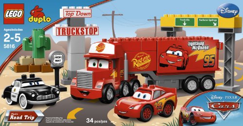 -. Binding : Toy -. Brand : L.E.G.O -. Department : Toys -. EAN : 0673419129206 -. Feature : Includes 3 cars: lightning McQueen in Piston cup racing paint, his truck, Mack, and Sheriff / Iconic highway and truck stop signs set the scene from the Cars movie / Its colorful and a sturdy set / Great for young builders / Contains 34 pieces in total -. IsAdultProduct : 0 -. IsAutographed : 0 -. IsMemorabilia : 0 -. Label : L.E.G.O -. LegalDisclaimer : Ship to US address only -. Manufacturer : L.E.G.O -. Model : 4567516 -. MPN : 5816 -. PackageQuantity : 1 -. PartNumber : 5816 -. ProductGroup : Toy -. ProductTypeName : TOYS_AND_GAMES -. Publisher : L.E.G.O -. ReleaseDate : 2010-06-01 -. Studio : L.E.G.O -. Title : L.E.G.O DUPLO Cars Mack's Road Trip 5816 -. UPC : 673419129206