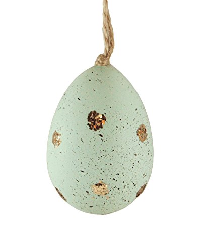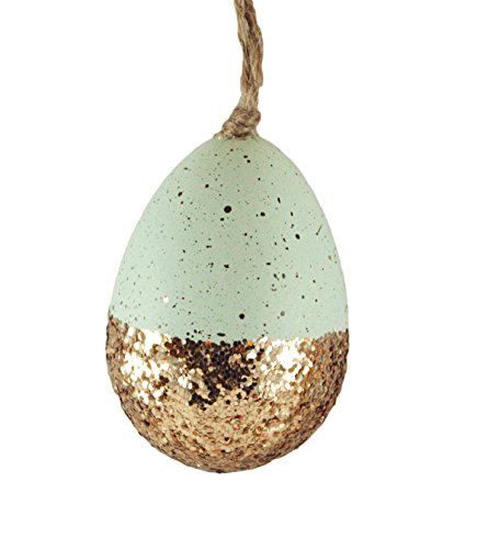 -. Binding : Kitchen -. Brand : Creative Co-op -. Color : Green -. EAN : 0807472917283 -. Feature : Set of 4 Hanging Christmas Ornaments / Size: 2.25" / Made of plastic with string attached for hanging / Features two glitter dipped and two glitter polka dotted egg shaped ornaments. / A wonderful gift idea for any loved one this Holiday Season! -. IsAutographed : 0 -. Label : Creative Co-op -. Manufacturer : Creative Co-op -. PackageQuantity : 4 -. ProductGroup : Home -. ProductTypeName : HOME -. Publisher : Creative Co-op -. Studio : Creative Co-op -. Title : Easter Egg Mint & Gold Glitter Hanging Ornaments - Set of 4 -. UPC : 807472917283