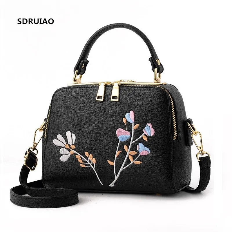 高級女性革ハンドバッグ女性メッセンジャーバッグ女性レザーショルダーバッグ女性の刺繍花ハンドバッグ甘いトートバッグ